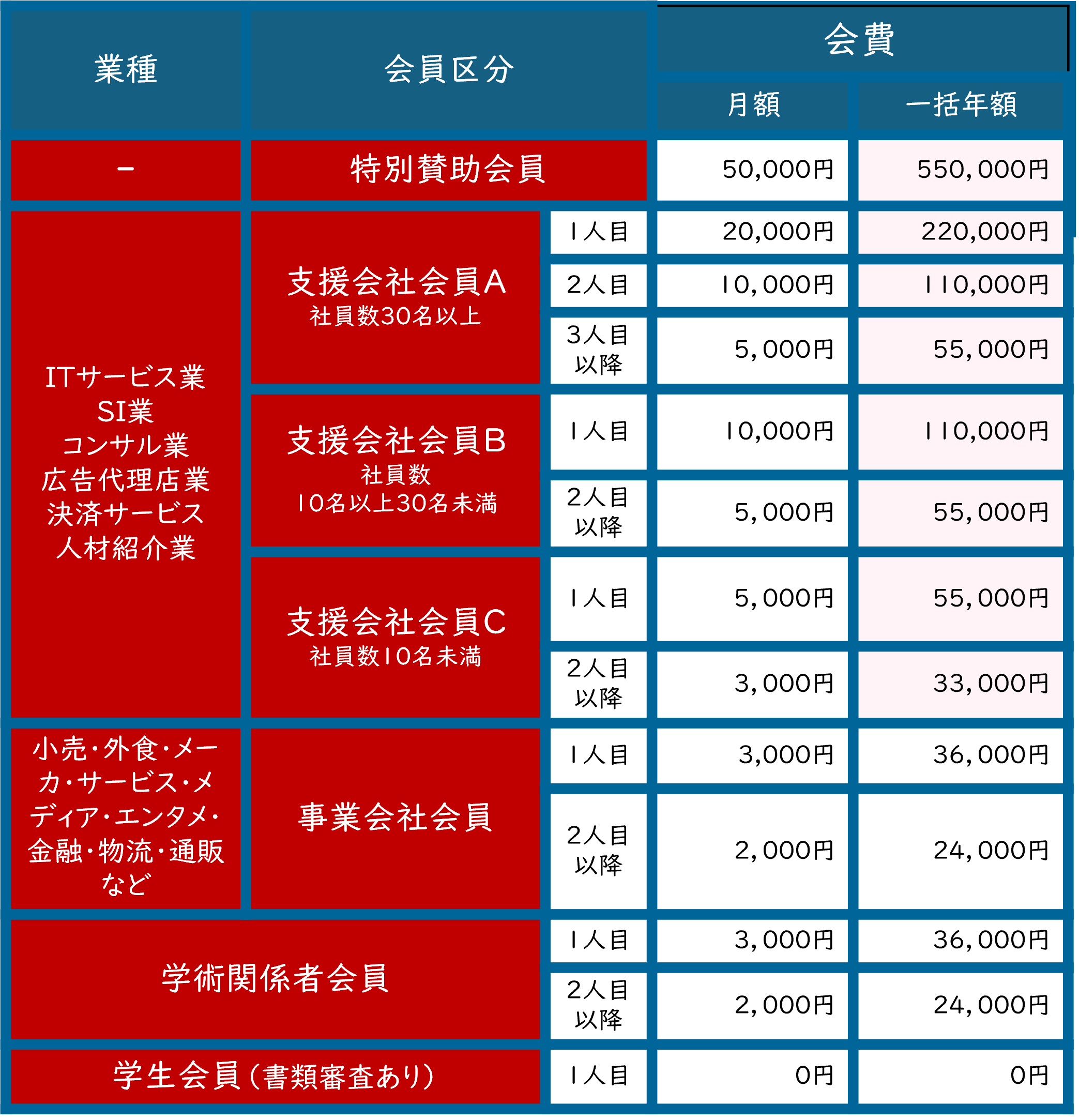 ※「特別賛助会員、支援会社会員、事業会社会員」は法人が対象です。
